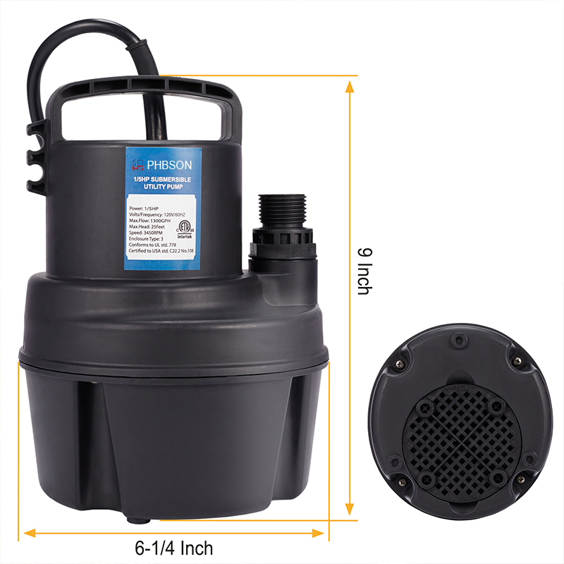 Package Dimensions: 6.2 x 6.2 x 12inches Item Weight: 6.8 pounds Color: Black Power Source: Ac Voltage :120 Volts (AC) Horsepower :1/5 hp Item Package Quantity 1 Flow Rate :1300 Gallons Per Hour ★Includes 3/4"garden hose adapter ★Cord Length:10Feet This Water Pump has a one-year warranty(Attention: Defects due to improper use of the pump are not within the warranty) and NOTE: It is prohibited to use with no water. Please feel free to contact us if you have any questions about the product. |
